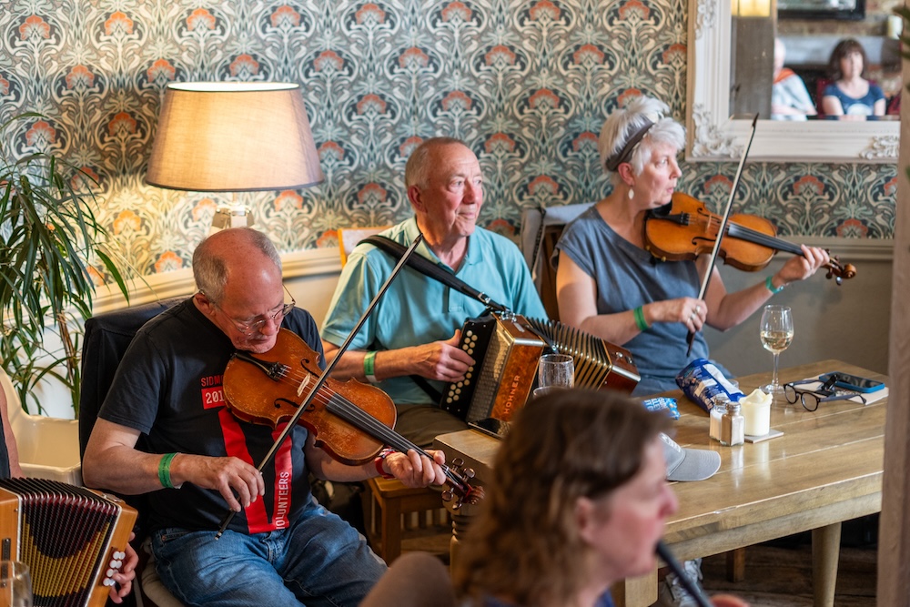 Drink in the atmosphere of traditional folk music sessions at the White Hart Hotel, all are welcome to join in or just listen and enjoy!
