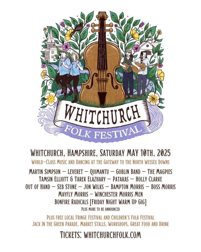 Bonfire Radicals . Michelle Holloway . Tamsion Elliott & Tarek Elazhary . Charles & Anna . Patakas . Martin Simpson . Leveret . Quimantu . Holly Clarke . The Magpies . The Goblin Band . Out of Hand . Seb Stone . Jon Wilks . Vincent Lindsay Clarke . Guinea Lane . Andover Museum Loft Singers . Keltyke . Joshua Chinappen . Ellie Watkiss . Angling for Farthings . Keith Bell . Jonathan Ozanne . Luca Simons . Emile Turner – Grober . Noah Scott . Kai Wilks . ManChoir Mutineers . Eloise Carter . Evergreen . Kalopsia . Mayfly Morris . Bampton Morris . Winchester Morris Men . Hook Eagle Morris . Longparish Mummers . Folk Active Youth Ensemble . Testbourne School Folk Group